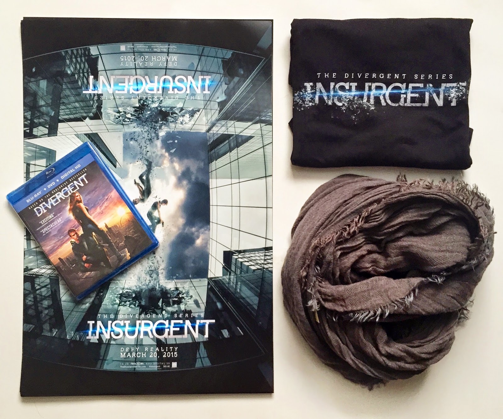 Aside from it being the first day of Spring it is also the very anticipated release date of the movie Insurgent, the second movie of the Divergent series. I recently hosted a local giveaway of local screening tickets and I wanted to host a giveaway for everyone, regardless of location so in honor of the release, today I bring you an Insurgent themed prize pack! You can enter for a chance to win everything in the picture!