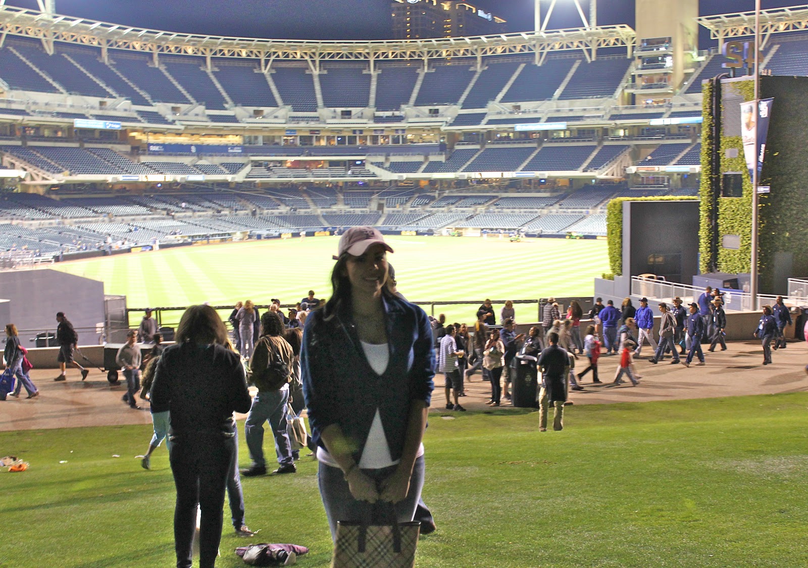 Aww you look so cute in your Padres colors too. It's always nice watching your hometown team win, I've always heard PetCo park is really nice. Amazing pics of the ballpark and I love your purse too.:)Also, totally agree w/your Paris comment, her friends looked so drugged out, you're right. xoDale