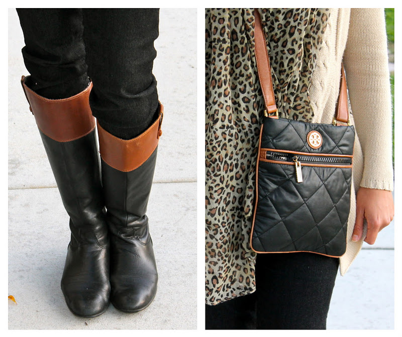 It’s finally cooling off here in Sunny San Diego, large contrast from yesterday’s high 70 degrees! I have been anxious to wear my fall clothes and most importantly my two-toned riding boots!! I love these boots because aside from being two-toned, they are super comfy. I coincidentally received this cute Tory Burch purse as a gift which went along perfectly!