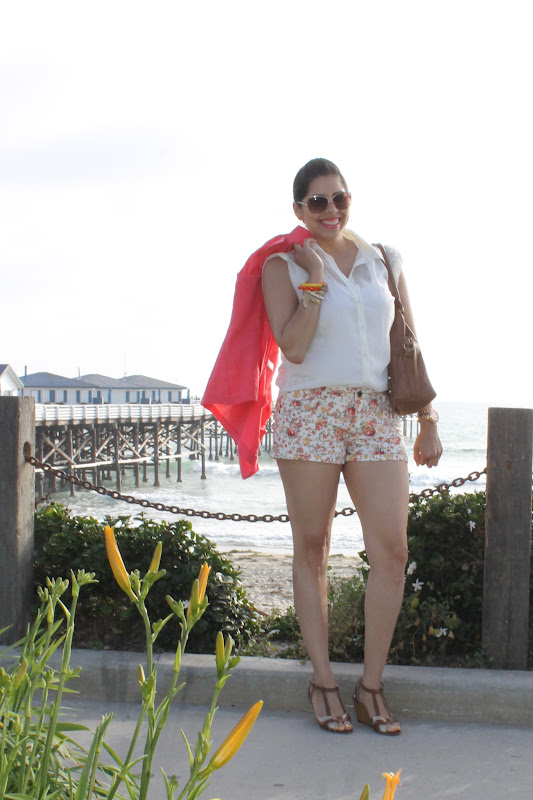 Super cute outfit! I love the flower print shorts & coral blazer. You look great!