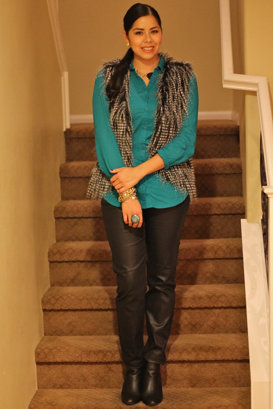Pau, this is such a perfect outfit for Thanksgiving and Emerald green is starting to be one of my favorite colors. I love the fur too, and I just got a pair of F21 faux leather pants and they look so much more expensive than they are like your's in this pic!Hope you're doing wellxoDalehttp://www.savvyspice.com/