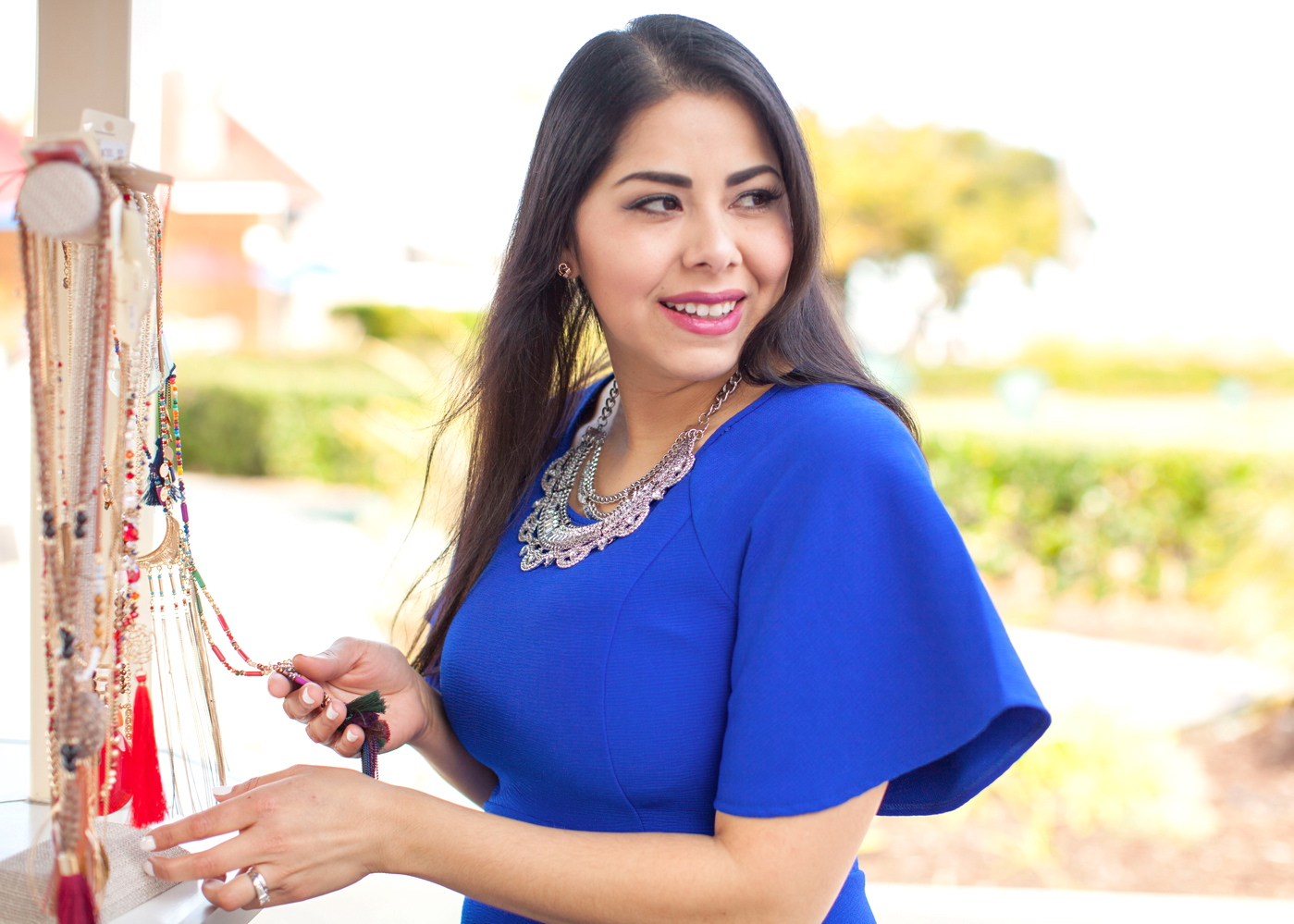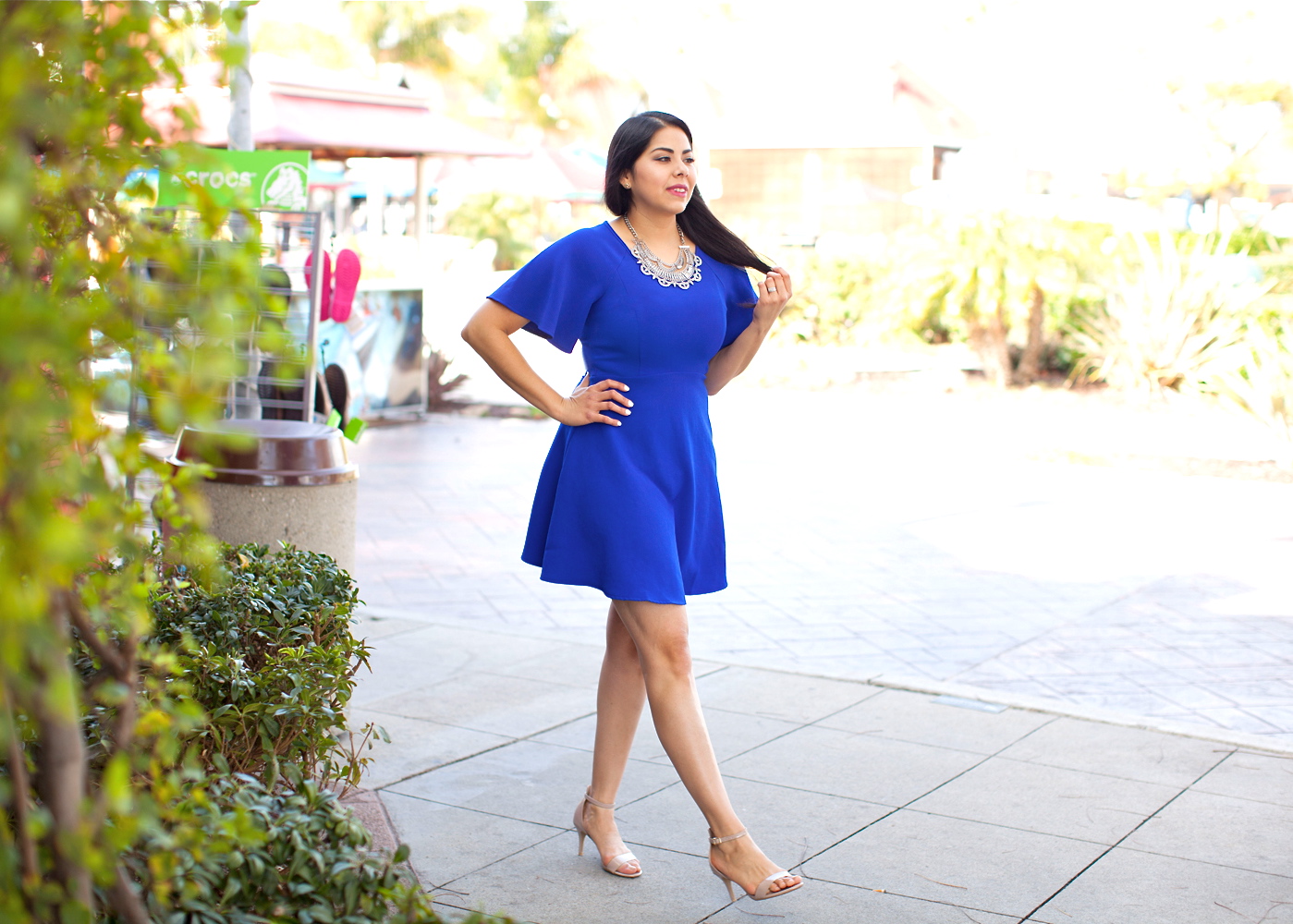 Today I’m throwing it back to a month ago, when I was a long-haired brunette, when I shot looks with Miss Match Boutique here in San Diego. This “Blue Belle” dress is still in stock and ready to accompany you on a night out, cocktail party or even an event during the day time. I was drawn to it primarily because of the color and then I realized it had some cool belle sleeves. On another note, I was really digging my lip color that day, so I bought more of it! It’s such a tame, yet noticeable color.