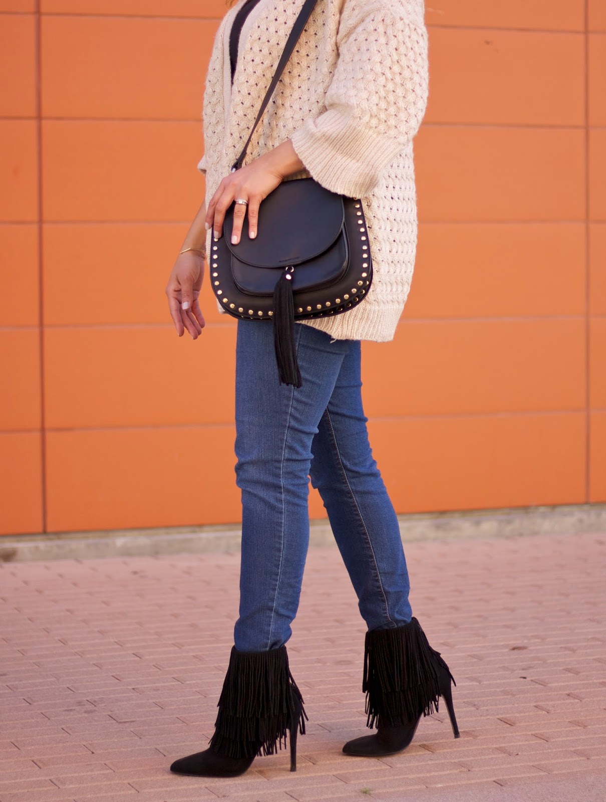 I added these fringe boots that always make the outfit more playful and coincidentally paired up well with the fringe on the purse.