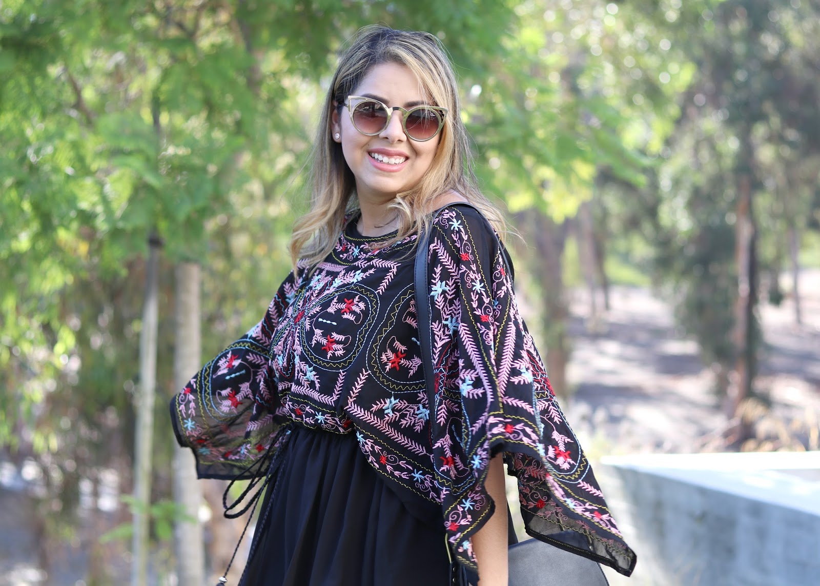 Happy Monday friends! When I first got this gorgeous dress from Chicwish it reminded me of a Mexican riviera vacation outfit with a chic spin. Since I have no Mexican vacation in sight (womp womp) I did the next best thing and wore it for a casual day in this heat paired with black wedges. I love the colorful embroidery details and the flowy sleeves!