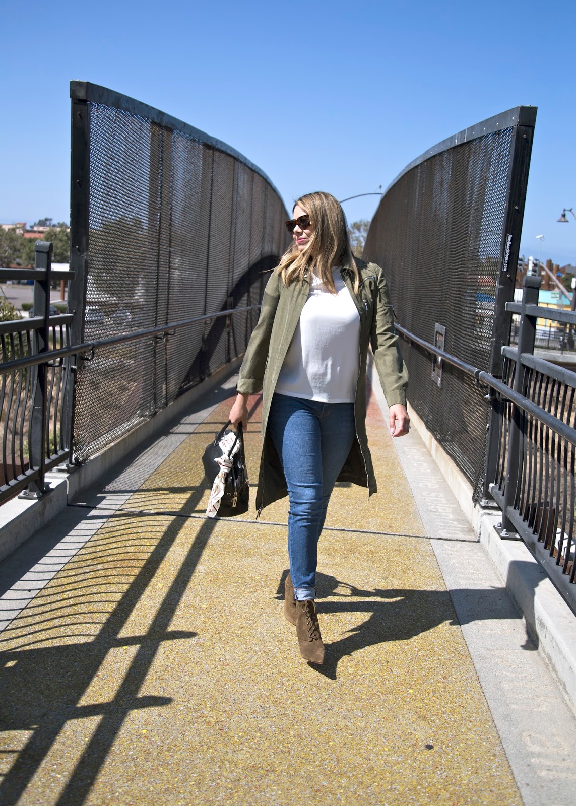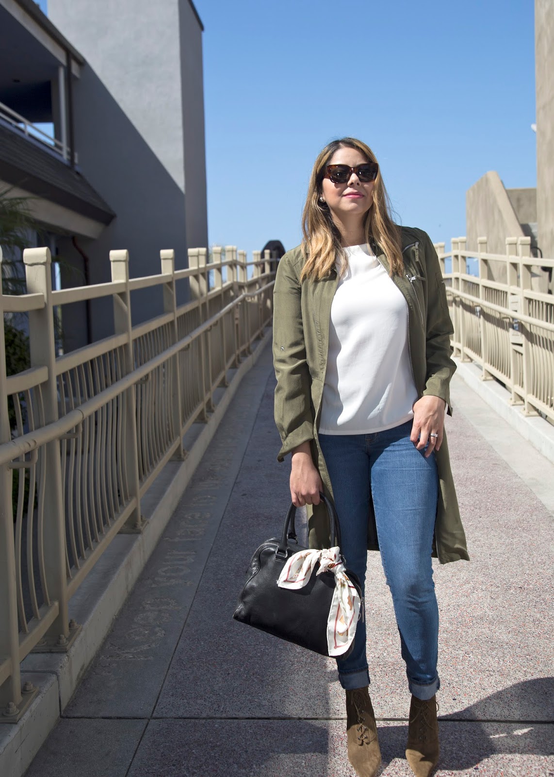 San Diego Fashion Blogger, how to wear a long bomber trench, celine sunglasses