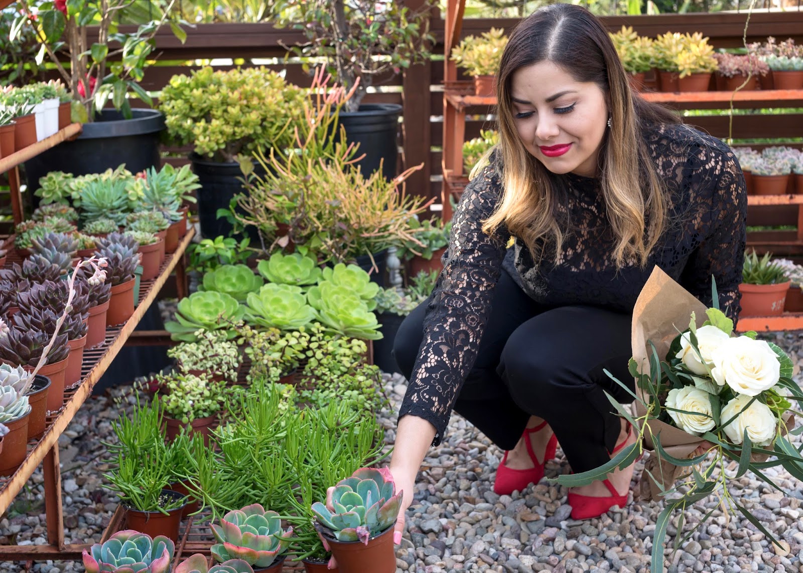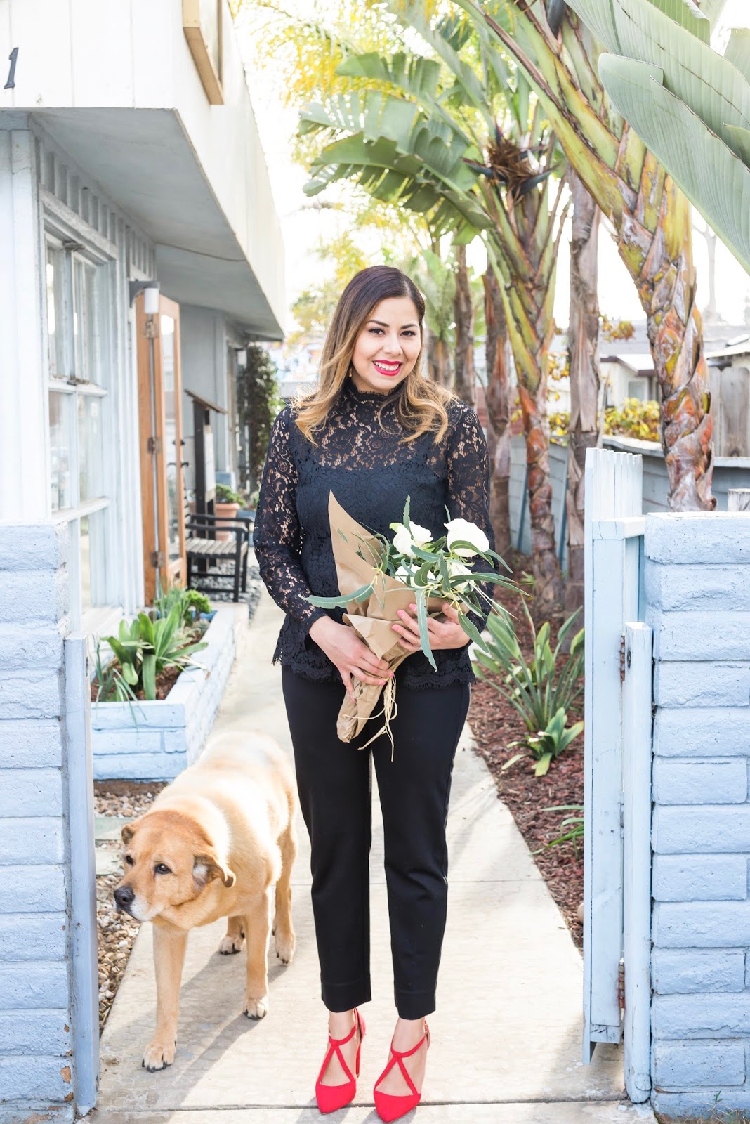 Valentine’s Day is already tomorrow, and I wanted to sneak this outfit idea in that has only subtle pops of red. Even if it’s not for V-day, it’s a nice look for date night. Just like LBD’s, a black top and trouser pairing offers versatility and instant chicness. I especially looooved this top because the lace looks elegant and the peplum shape is very flattering!
