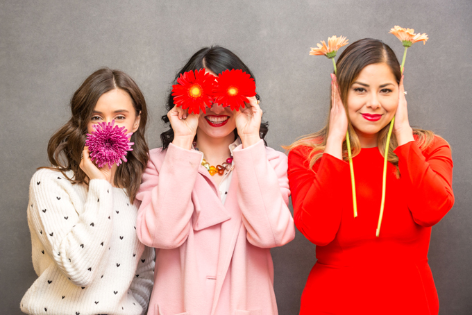Today I’m bringing you the classic Valentine’s Day Outfit, in the form of an awesome creative collaboration with Pura Soul Photography! Valentine’s Day is not only the holiday of love, it is also the holiday of friendship and to celebrate that fellow blogger gal pal Kali organized a fun “Galentine'” girls shoot with Jenna and I! We shot at the cutest flower shop in Ocean Beach, called Thistle that provided our fun floral props. If you’re in San Diego there is a great opportunity to do a fun shoot like this, all of the details at the end of this post.