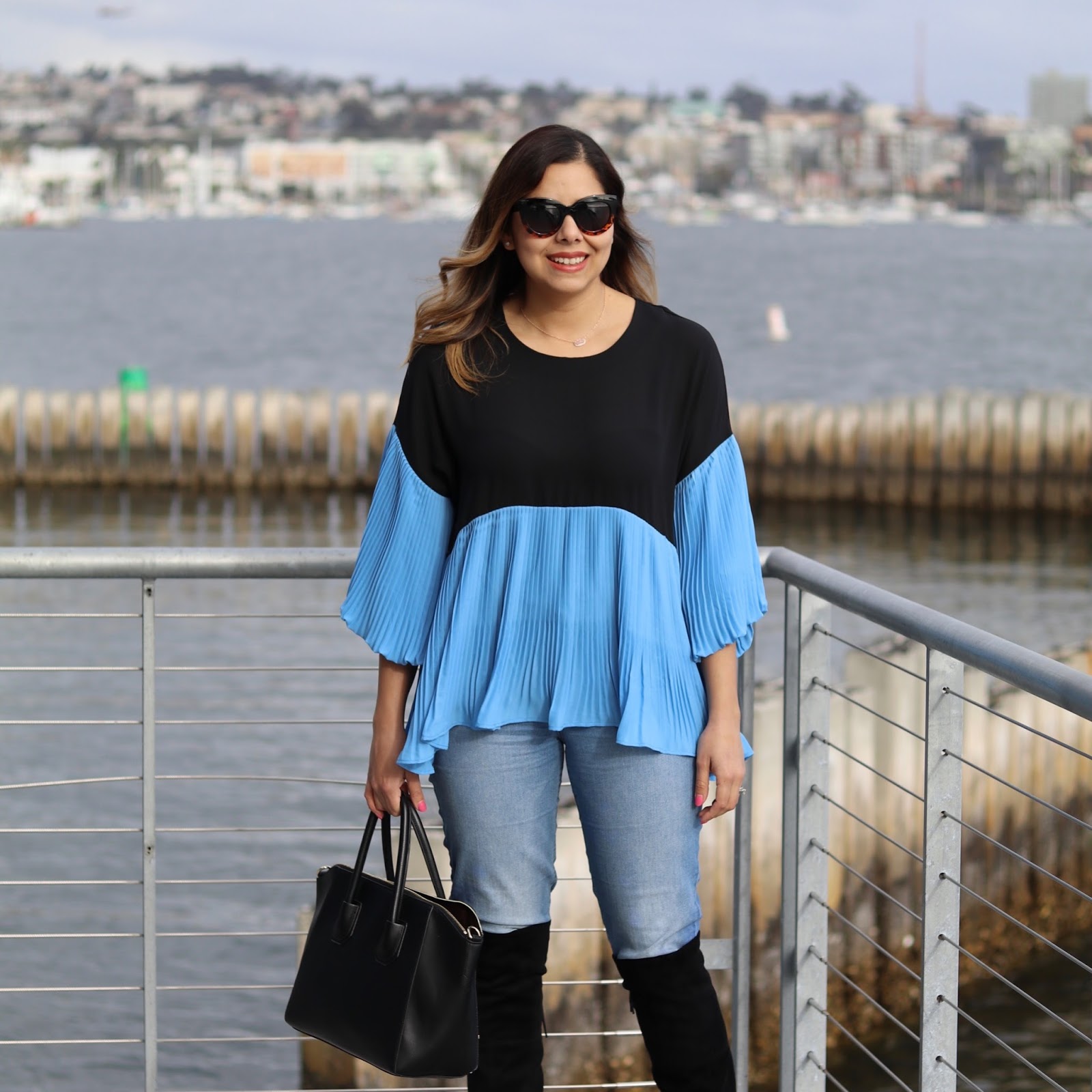 Happy Wednesday and to all my women out there, Happy International Women’s Day! I wish I had planned a red outfit to post today to represent, but instead I’m sharing this look that I wore to lunch with my mom and siblings which in a way was a celebration of the most important woman of my life! We wanted to take mom somewhere nice, and we picked Coasterra Restaurant because of the stunning views and delicious food (see pics below). It was one of those chilly San Diego days where over the knee boots felt appropriate and this Chicwish flowy top ended up being perfect to conceal my post-lunch bod (hee hee).