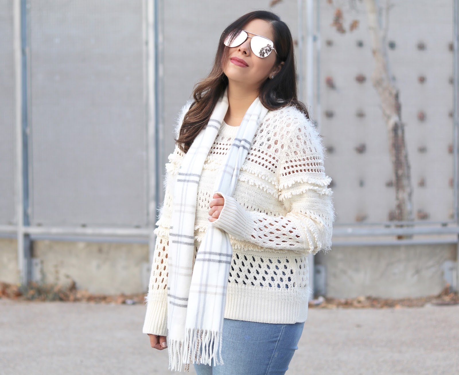 About the Outfit: Boots (on sale right now here!) | Jeans (here) | Scarf (here and also comes in different colors) | Sweater (sold out, but similar here and here) | Quay x Desi High Key Sunglasses (here) | MAC lipstick in “Mehr” here