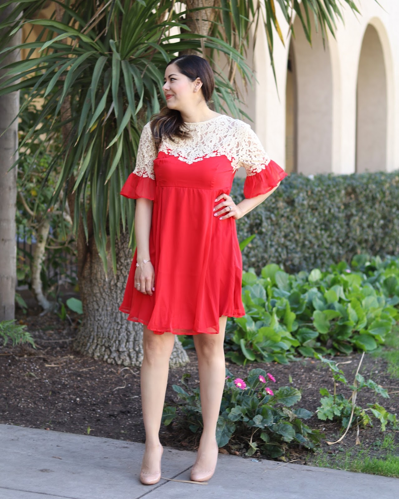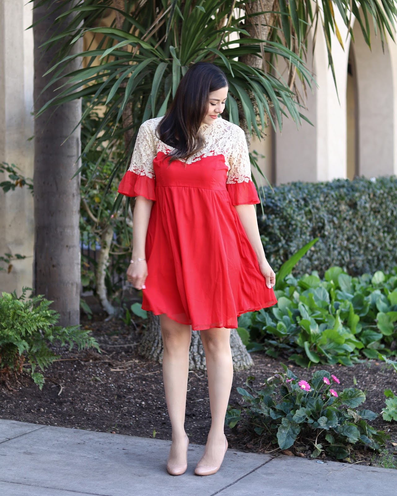 Although a red dress for Valentine’s Day isn’t anything groundbreaking it has pretty much become a tradition here on my blog (as you can see here and here!) So for my annual Red Dress for Valentine’s Day post I chose this flowy beauty with the cutest lace details and sleeves (I know, I can’t seem to stay away from those darn sleeves!)