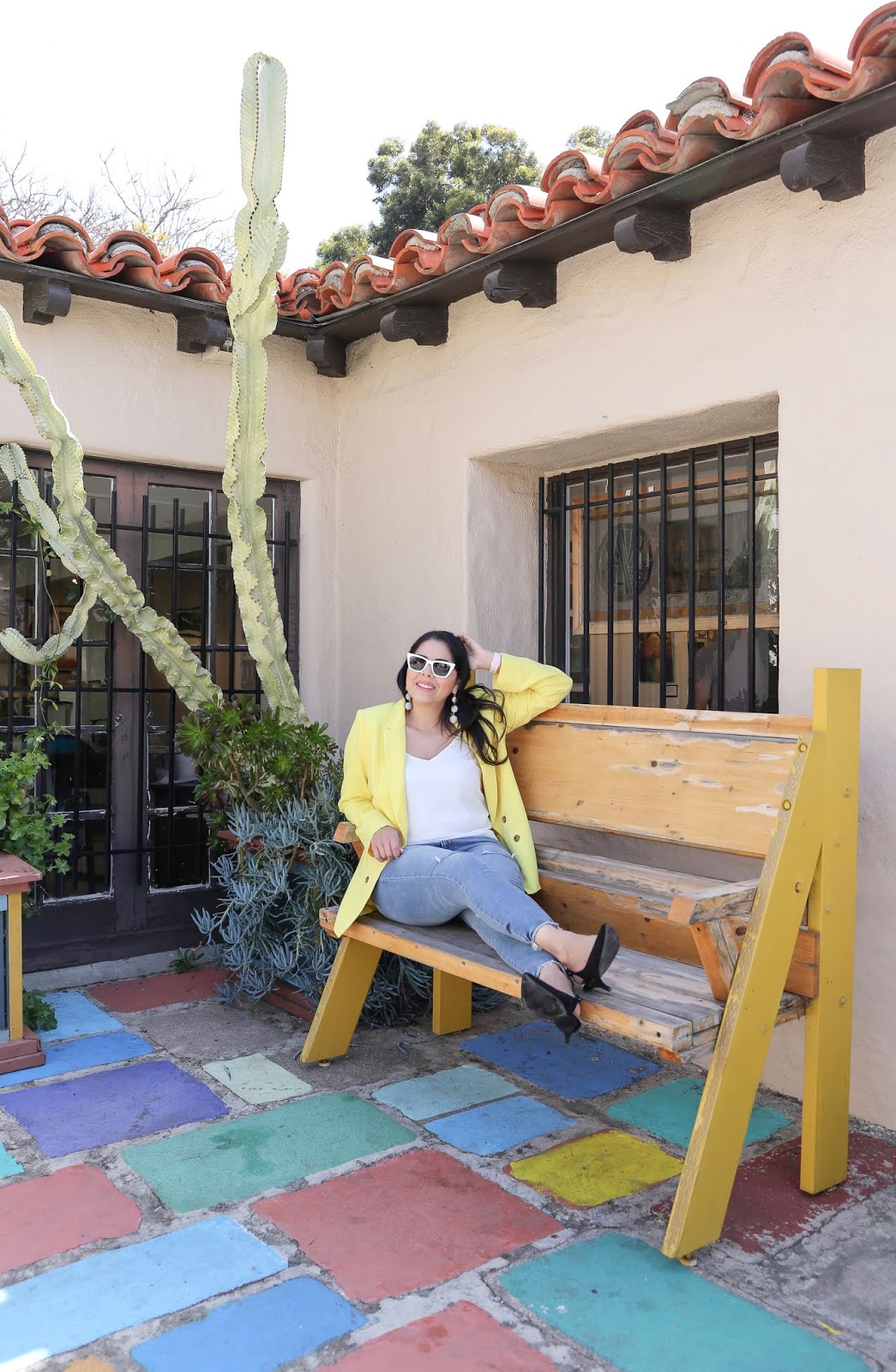 And what better way to feature colored blazers than to shoot the look inside The Spanish Village Art Center in Balboa Park! Filled with colored cement tiles and art studios, if you’re in San Diego you definitely have to pay it a visit!